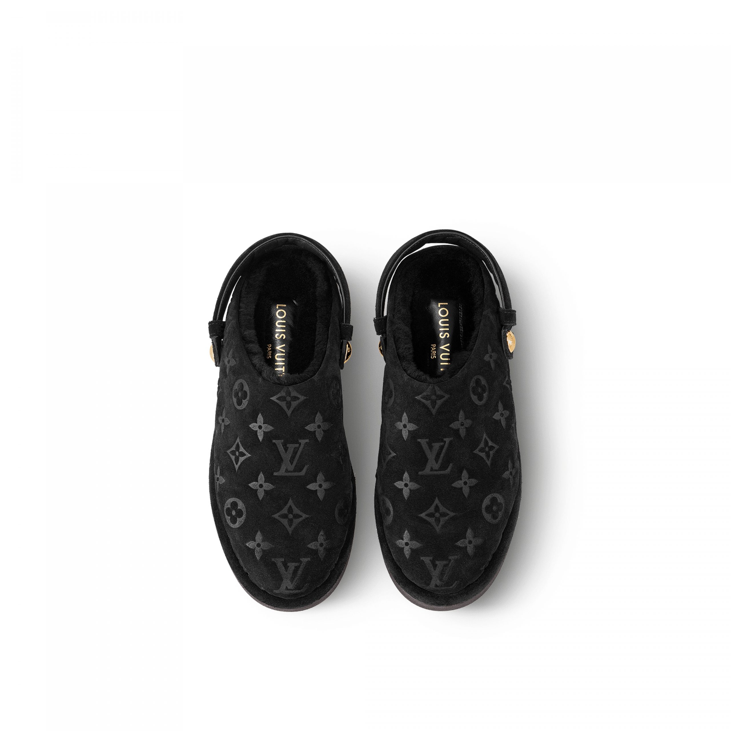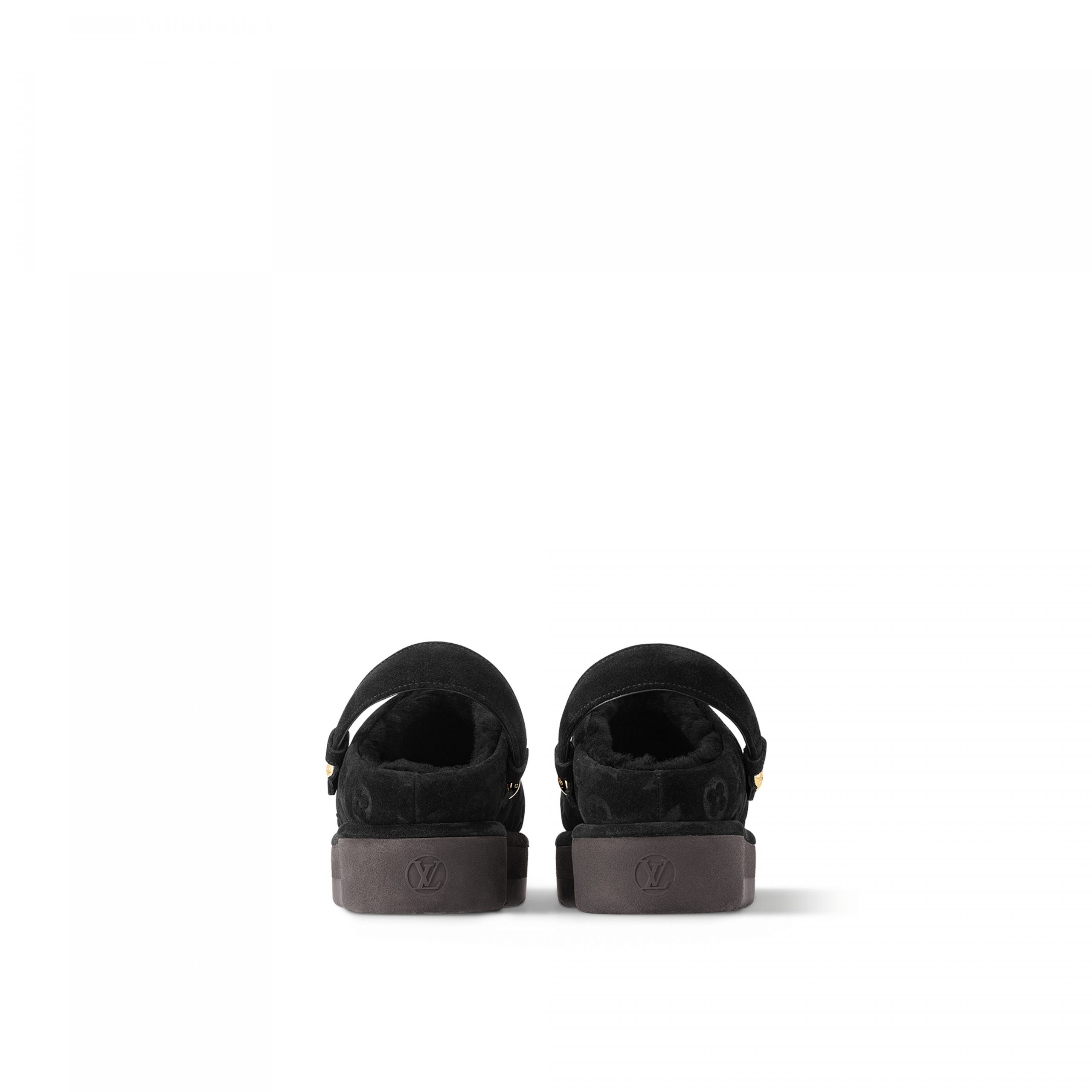 The Aspen platform clog comes in velvety suede calf leather, which is debossed with the iconic Monogram pattern and complemented by a snug shearling lining. This on-trend, year-round style can be worn with or without the backstrap, which is fixed with engraved, gold-tone press-studs. It is finished with a chunky micro outsole.