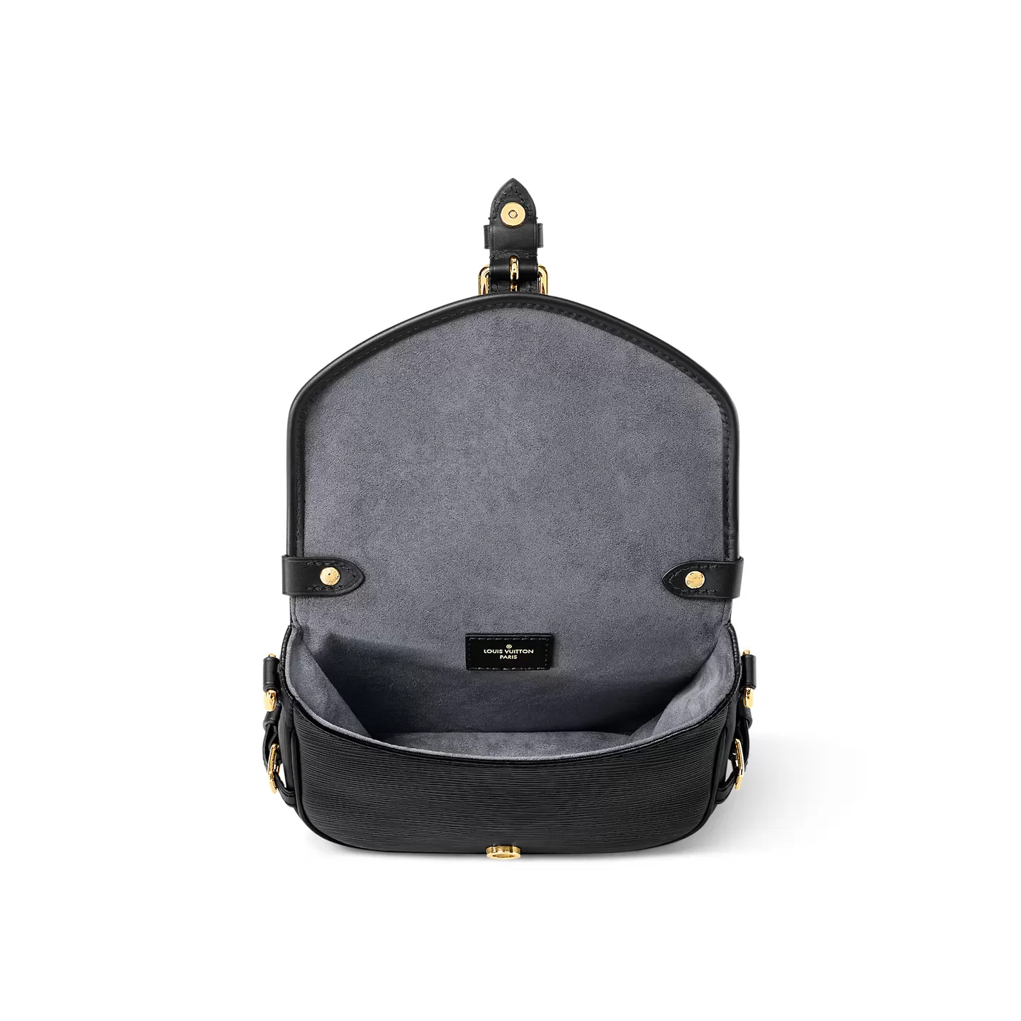 This edition of the Saumur BB in a new, softer Epi leather revisits an archival design. The saddle-bag silhouette is detailed with House signatures, including the LV Circle emblem and finely crafted buckles. The front buckle is fitted with a magnetic closure, a modern touch. The strap and top handle are both detachable, for a variety of styling options.