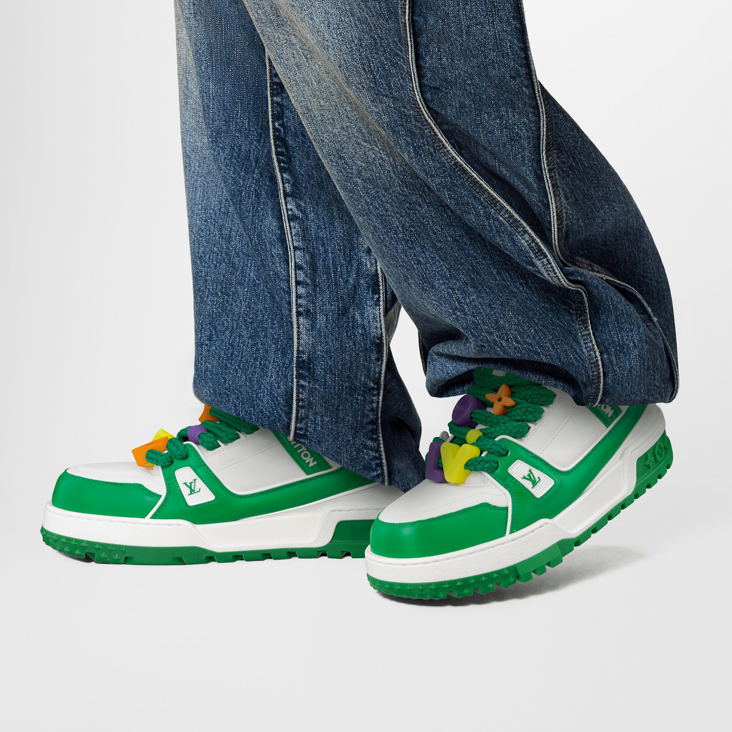 Seen at Louis Vuitton’s Spring-Summer 2023 men’s show, the LV Trainer Maxi sneaker reinterprets Virgil Abloh’s cult LV Trainer sneaker with an oversized fit inspired by the ready-to-wear. The calf-leather upper has thick textile laces embellished with colorful beads featuring key Louis Vuitton signatures. This model bears the LV Initials on the tongue and Monogram Flowers on the outsole.