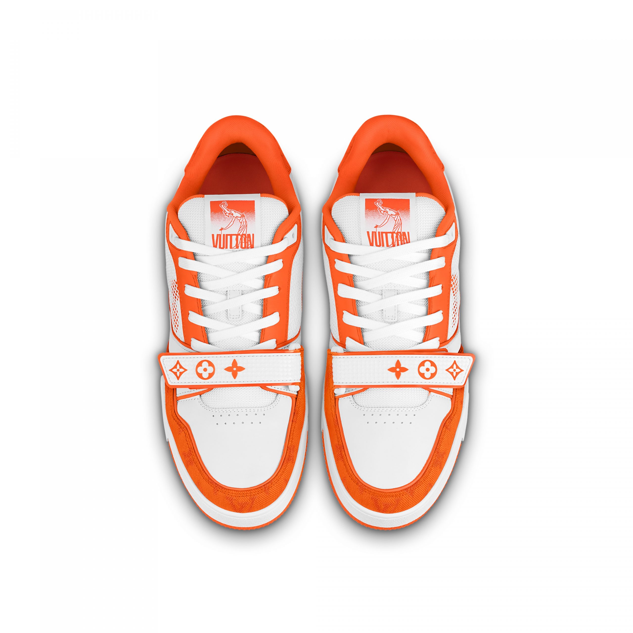 Louis Vuitton LV Trainer Sneaker Velcro strap Monogram denim Orange 1A9ZBG