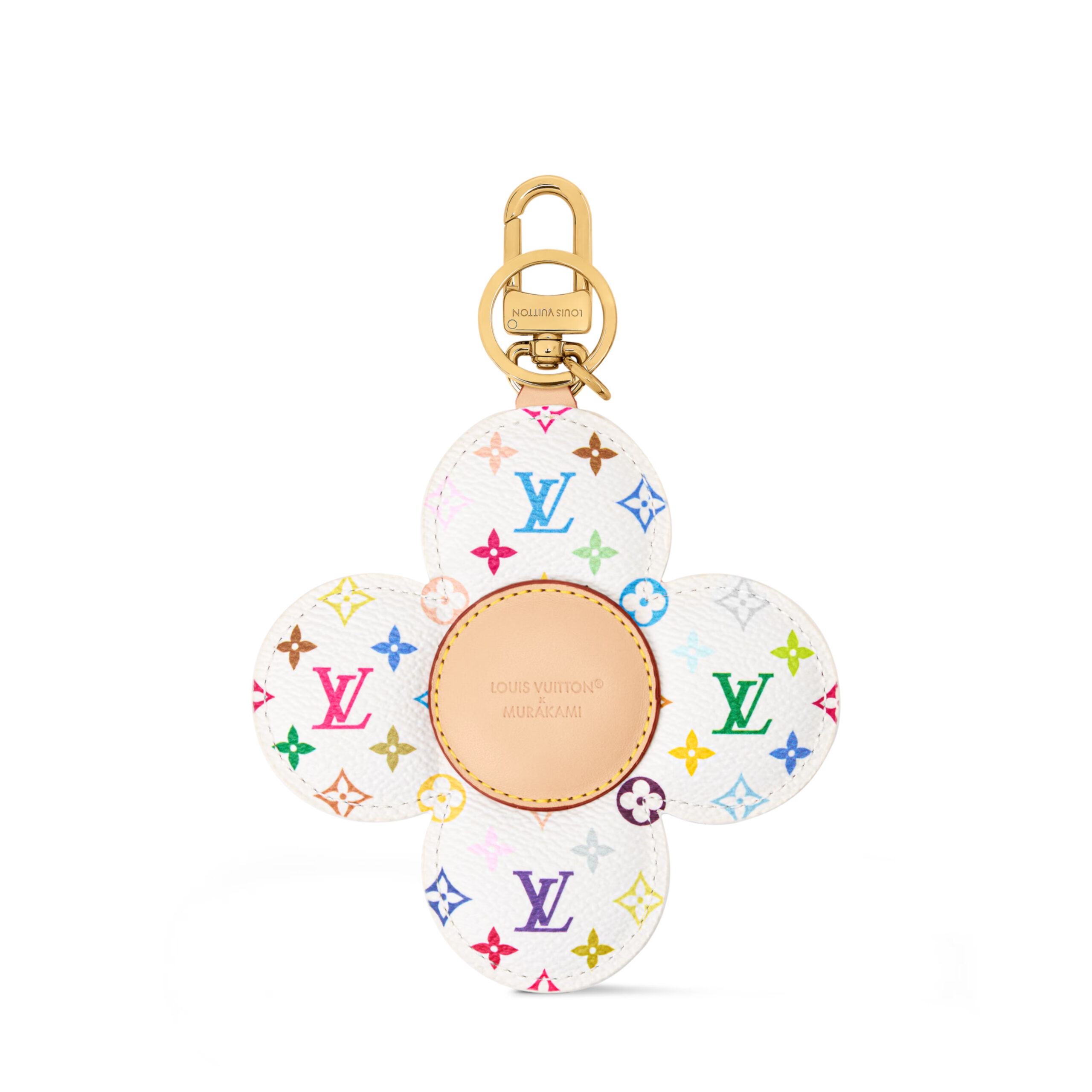 The limited-edition LV x TM Vivienne Head bag charm adds a cheerful burst of color to any outfit. The House’s beloved mascot is depicted in canvas with a Monogram Flower eye. A collar featuring the playful Monogram Multicolor pattern, created by the illustrious Japanese artist Takashi Murakami, adds a vibrant signature touch to this fun, on-trend charm.