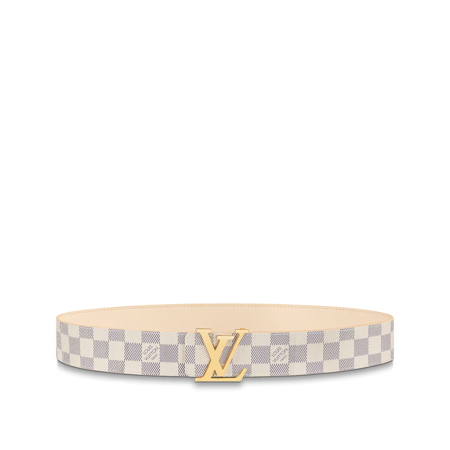 This iconic and timeless belt with a larger strap and buckle is perfect with jeans, for a casual look. A strong piece with is Damier Azur canvas, also available on cream leather thanks to the reversibility of the belt. A metal LV Initiales buckle completes the silhouette for a strong look