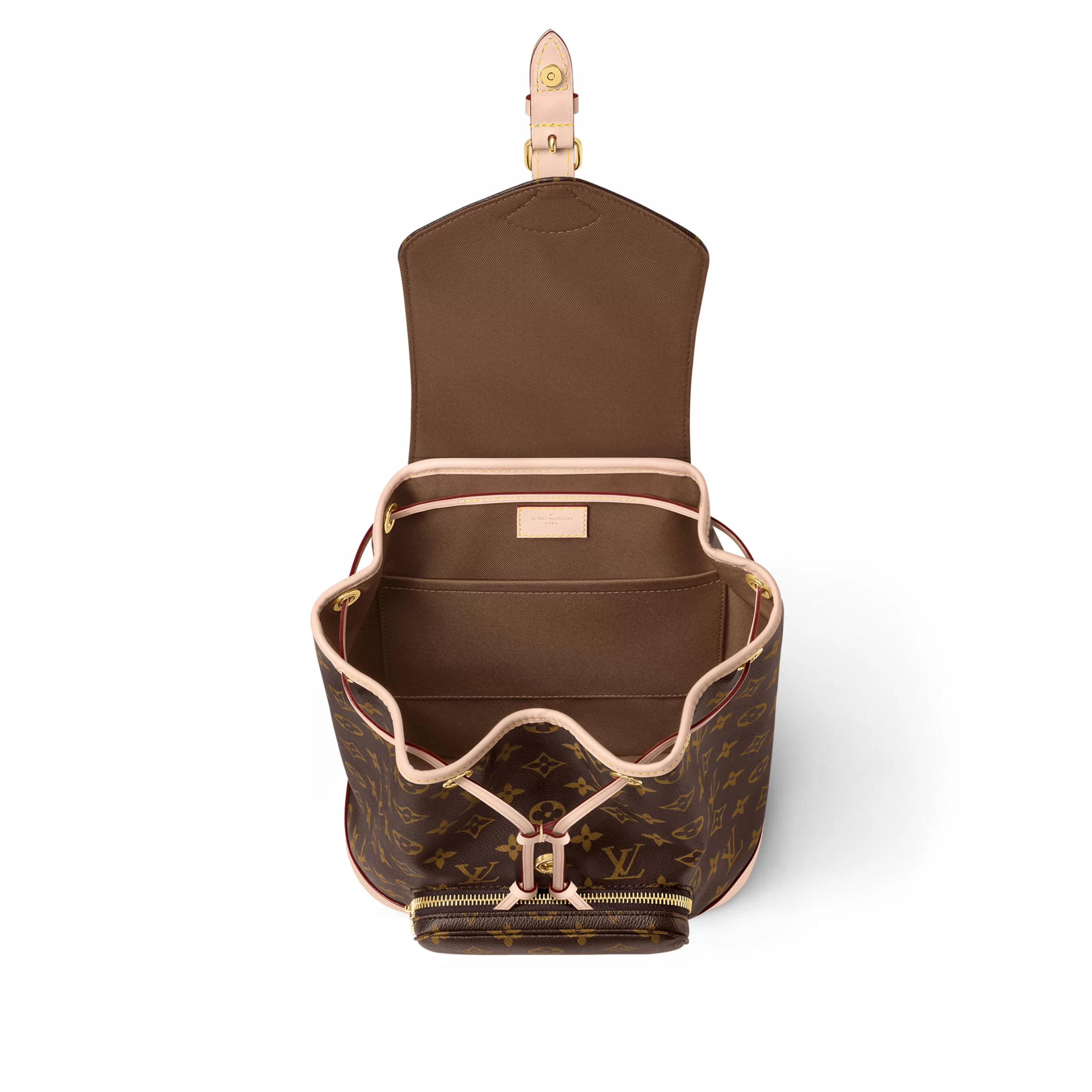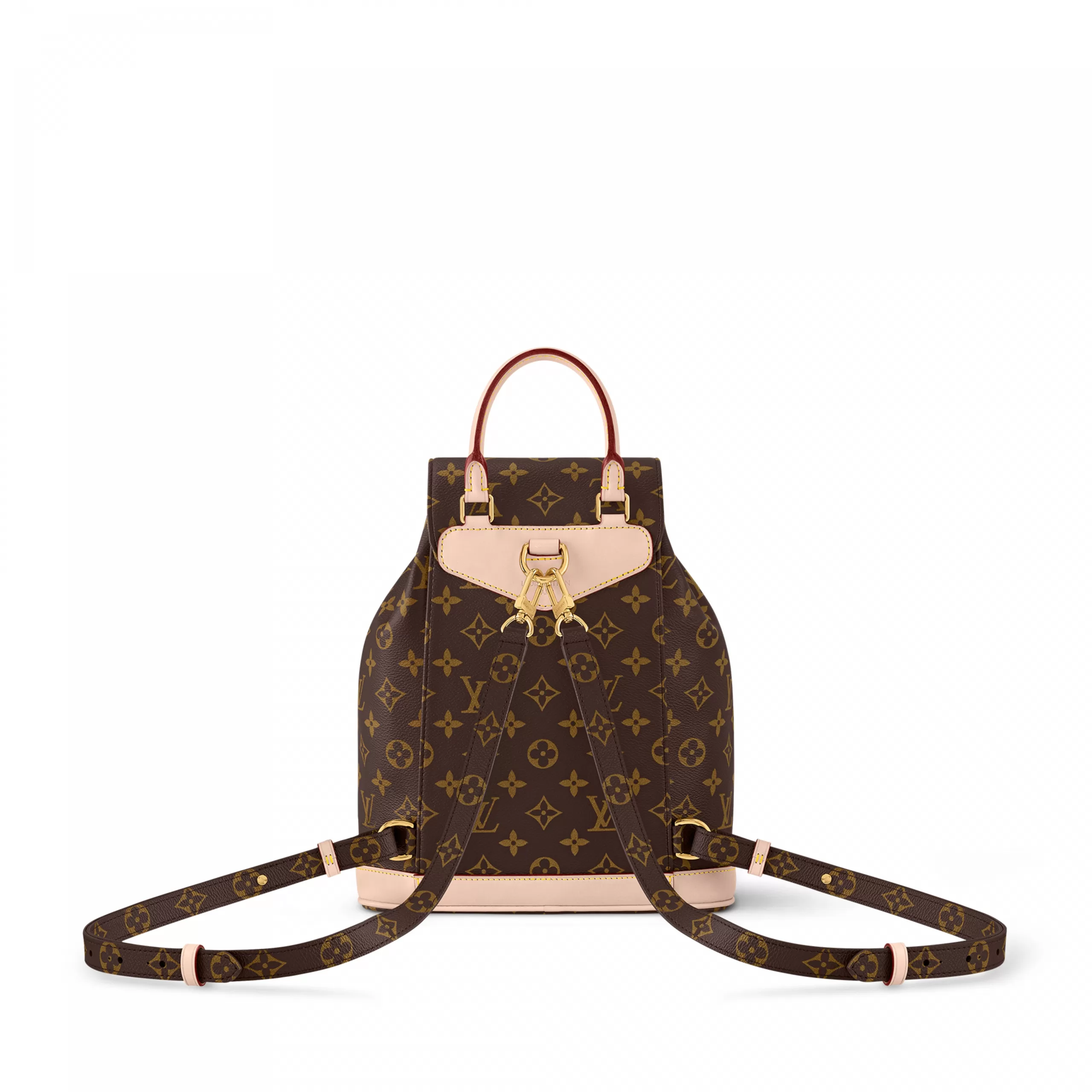 Inspired by the House’s Montsouris bag from 1994, the practical and stylish Montsouris PM backpack by Nicolas Ghesquière is made from Monogram coated canvas, with cowhide-leather trim. The leather top handle and two adjustable leather straps give carry options while the tasteful drawstring and magnetic closure bring security.