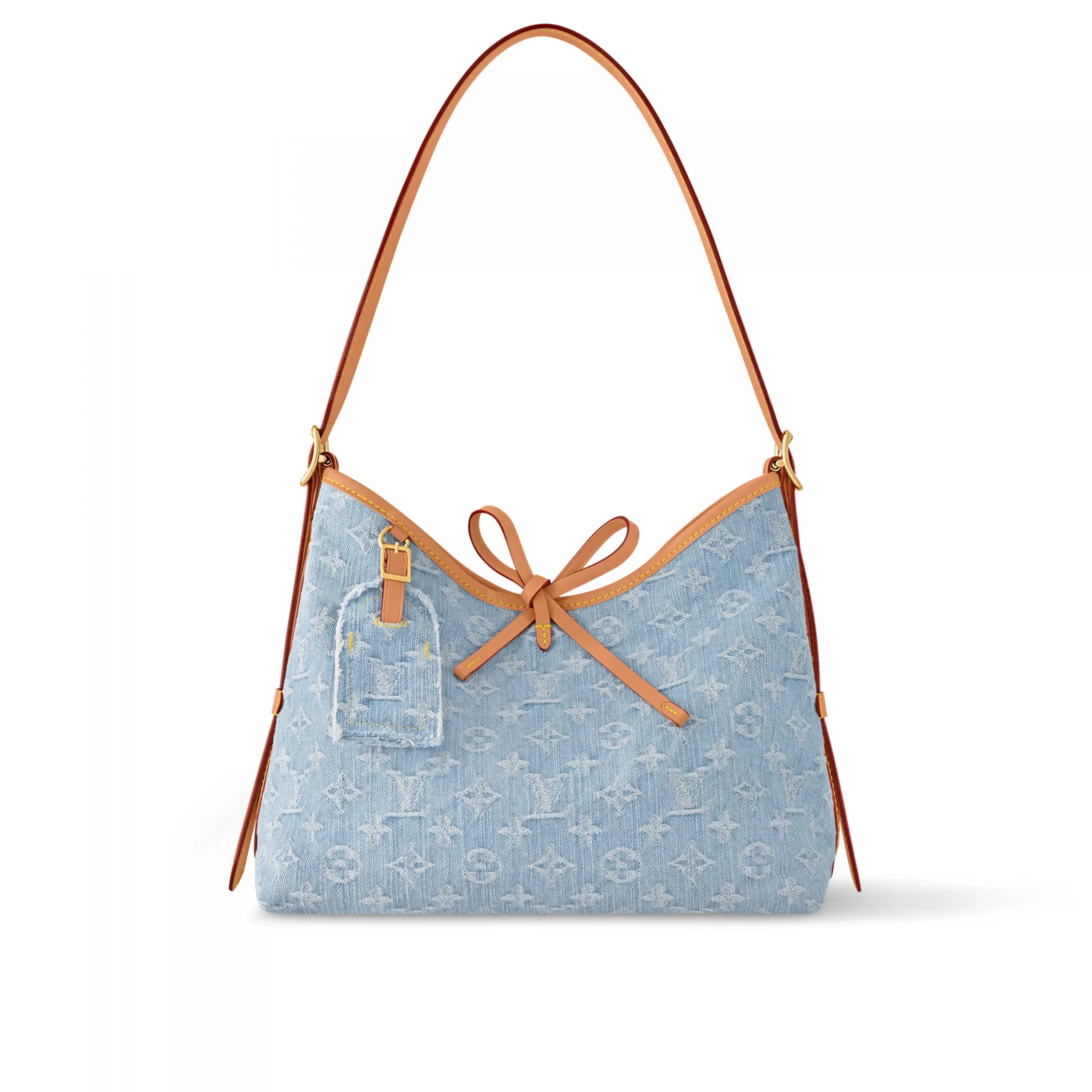 Made from 100% organic cotton, this Carryall PM in Monogram Denim is part of the LV By The Pool Collection. The stonewashed treatment of the light-blue and white Monogram gives the bag a casual elegance. The design includes a matching, removable pouch and three inside pockets. The strap adjusts for hand, shoulder, or cross-body carry.