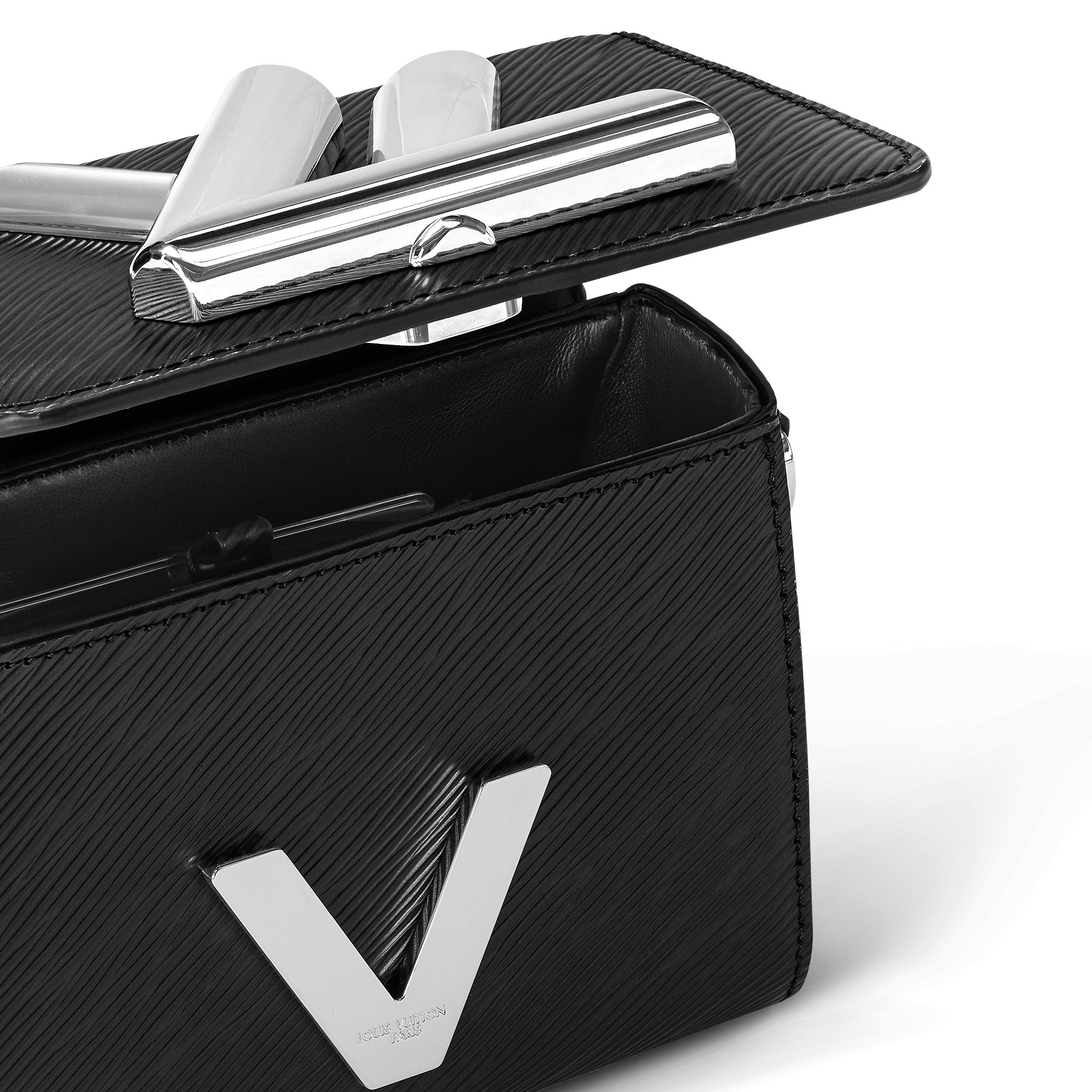 - Flap closure with decorative LV Twist lock (not functional)