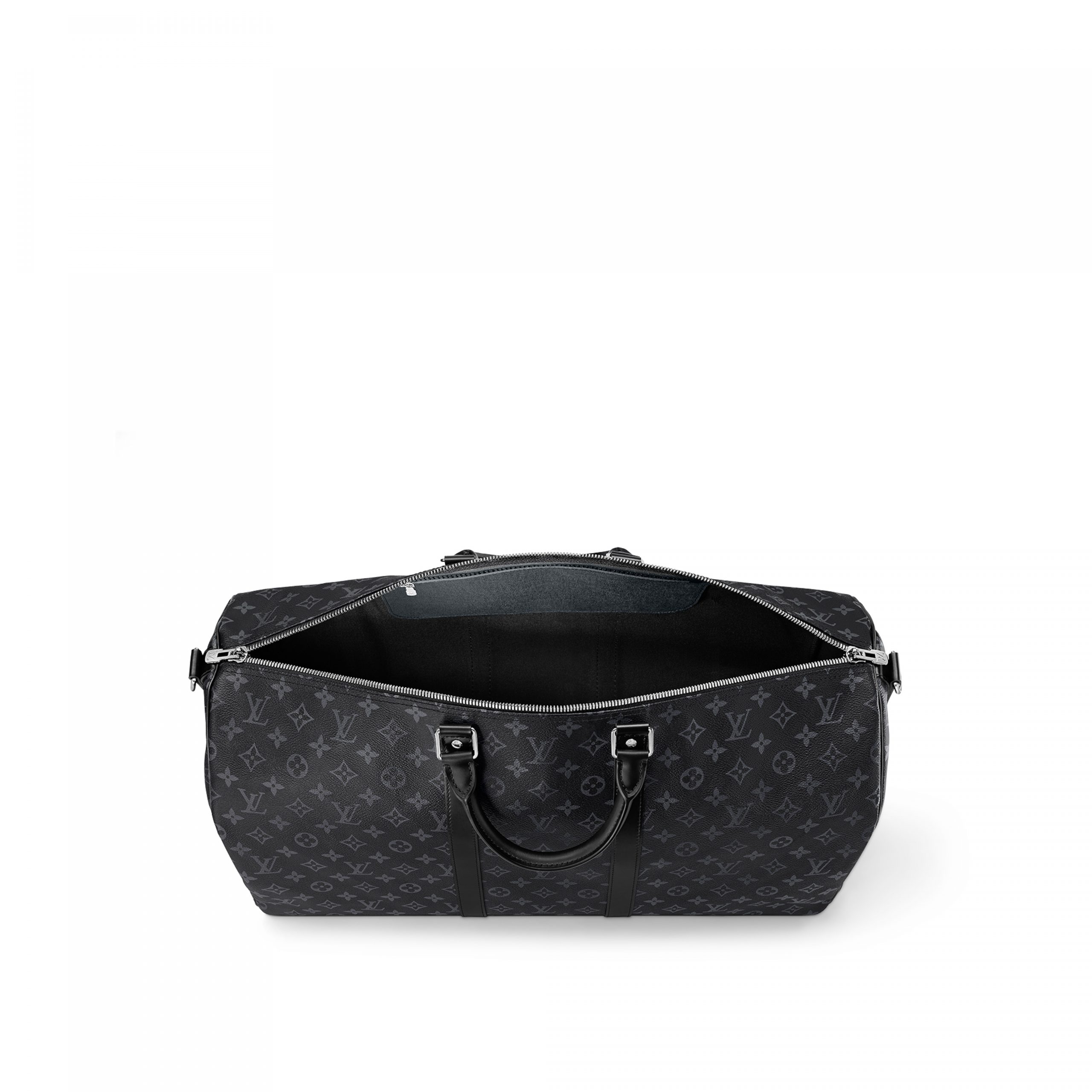 The beloved Keepall 55 Bandoulière now comes in our new iconic black and grey Monogram Eclipse canvas. Light, supple and always ready for immediate departure, the bag lives up to its name: those adept at the art of packing can easily fit a week’s wardrobe into the generously sized (and cabin-friendly) Keepall 55.