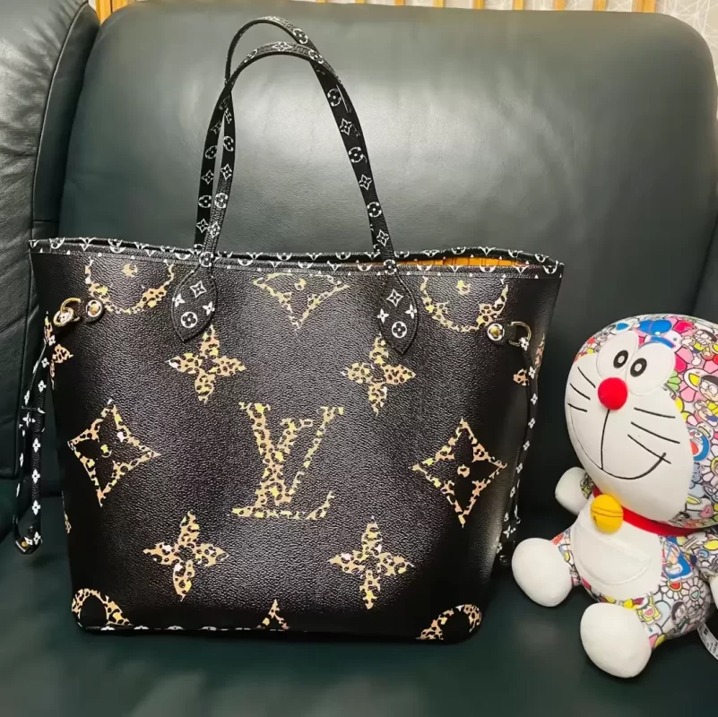The Neverfull MM tote bag is fashioned from canvas with a print that combines different-sized Monogram patterns with animal prints. The striking result is sure to satisfy both House purists and those seeking a more adventurous alternative. Spacious, the Neverfull has slim handles that can be worn over the shoulder or on the arm.