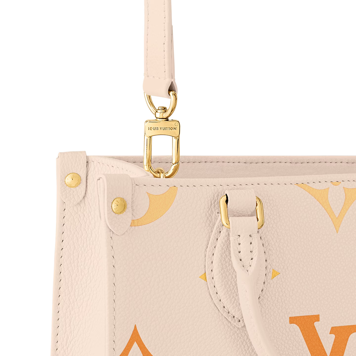Fashioned from in supple Monogram Empreinte leather with its and embossed with a and printed extra-large Giant Monogram motif, the OnTheGo PM is a compact tote bag offering with a fresh gradient colorway for the summer. It has two rolled-leather top handles for hand carry and a removable and adjustable strap for shoulder or cross-body wear. Inside there’s a zipped pocket will fit daily essentials. for valuables.
